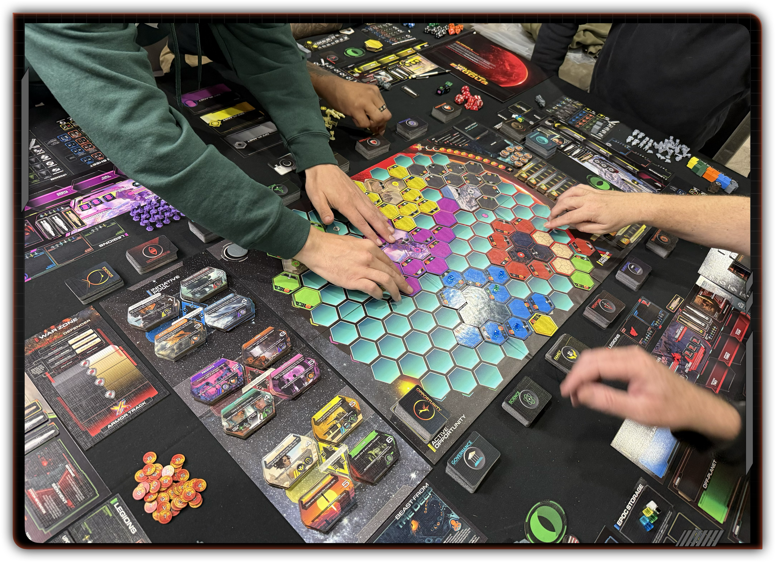In the game, a massive cataclysm is going to destroy the planet and everything on it. The players (“Houses”) must find a way to get as many of their Citizens and resources off-planet as they can.
